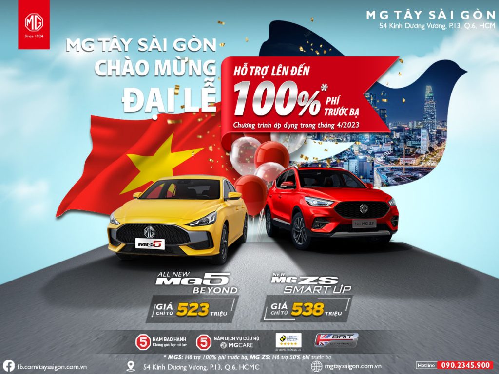 17/04/2023Giảm 100% Phí Trước Bạ cho dòng xe MG 5 trong tháng 4 này. Từ ngày 10/4/2023, khách hàng sẽ có cơ hội sở hữu xe MG 5 với ưu đãi tương đương giảm 100% phí trước bạ. Chương trình được áp dụng cho tất cả các phiên bản của MG 5. Đây là mức ưu đãi cao nhất của MG Tây Sài Gòn dành cho mẫu xe MG 5 ở thời điểm hiện tại. Thông tin cụ thể như sau: