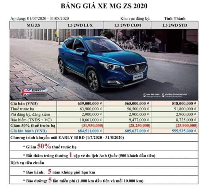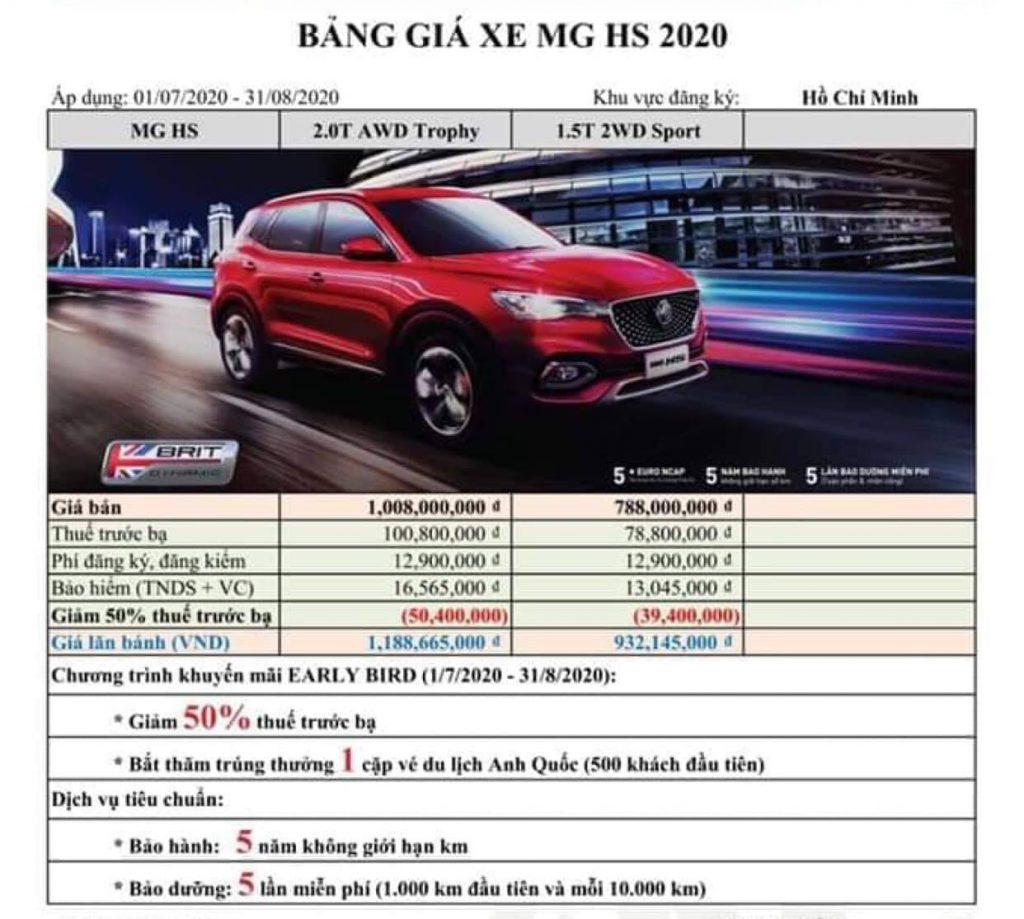 16/08/2020Mức giá dự kiến nhiều khả năng là chính thức của MG ZS và HS ngang ngửa các đối thủ Nhật, Hàn và Mỹ trong phân khúc.